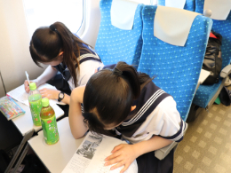 2日目はクラス別行動です。奈良ロイヤルホテルからクラスごとに出発しました。午後から雨が降り出しましたが大きな影響はなく、無事に日程を終えました。夜には宿舎で京扇子の絵付けを体験しました。出来上がった扇子は若草祭で展示する予定です。