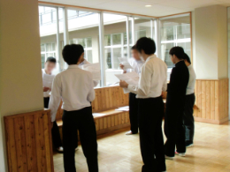 3年生は、学級合唱の活動をスタートしました。どのクラスも、パートごとに教室や廊下のスペースを使って音取りをしていました。