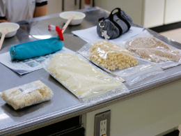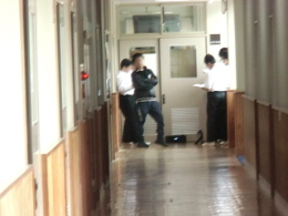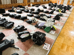 テストの日は,教科書類は教室前のコモンスペースに置きます。休み時間に生徒たちはここで最終確認をしています。中間テストの日であっても,整然と並べられたカバンを見ると「いつも通り」という感じがします。猛暑対策のためのジャージ生活を終え,今日から制服での生活に戻りました。