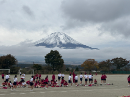 甲府地方気象台が富士山の初冠雪を発表しました。平年より21日遅く、昨年より15日早い観測だそうです。グランドでは陸上(長距離走)の授業が行われています。だいぶ寒くなってきましたが、生徒たちは今日も元気です。