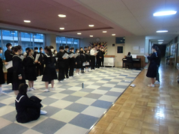 来週金曜日に実施要諦の合唱発表会に向けて、3年生が学年中間発表を行いました。他クラスから刺激をもらって、さらにいい合唱にする意欲が高まったのではないでしょうか。いい仲間たちと切磋琢磨して、さらに高めてほしいと思います。