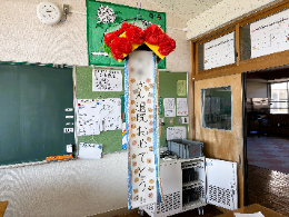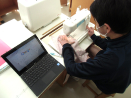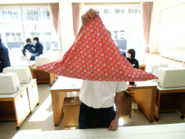 2年生が家庭科の授業で「ヒイチ」を作っています。「ヒイチ」とは、忍野村をはじめ、富士山周辺で見られる三角形の袋状に縫った飾りのことで、毎年、小正月を祝う道祖神祭りに合わせて制作され、家内安全、商売繁盛、無病息災などの祈願を込めて、期間中は道祖神に奉納されます。中学生が地域づくりに貢献できることはうれしいことです。