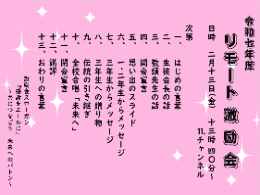 予定を変更し、リモート開催となりました。出席予定の保護者の皆様にはご不便をおかけしましたが、確かな手応えとともに「感謝をエールに~共につなごう 未来へのバトン」のスローガンを体現する会となりました。